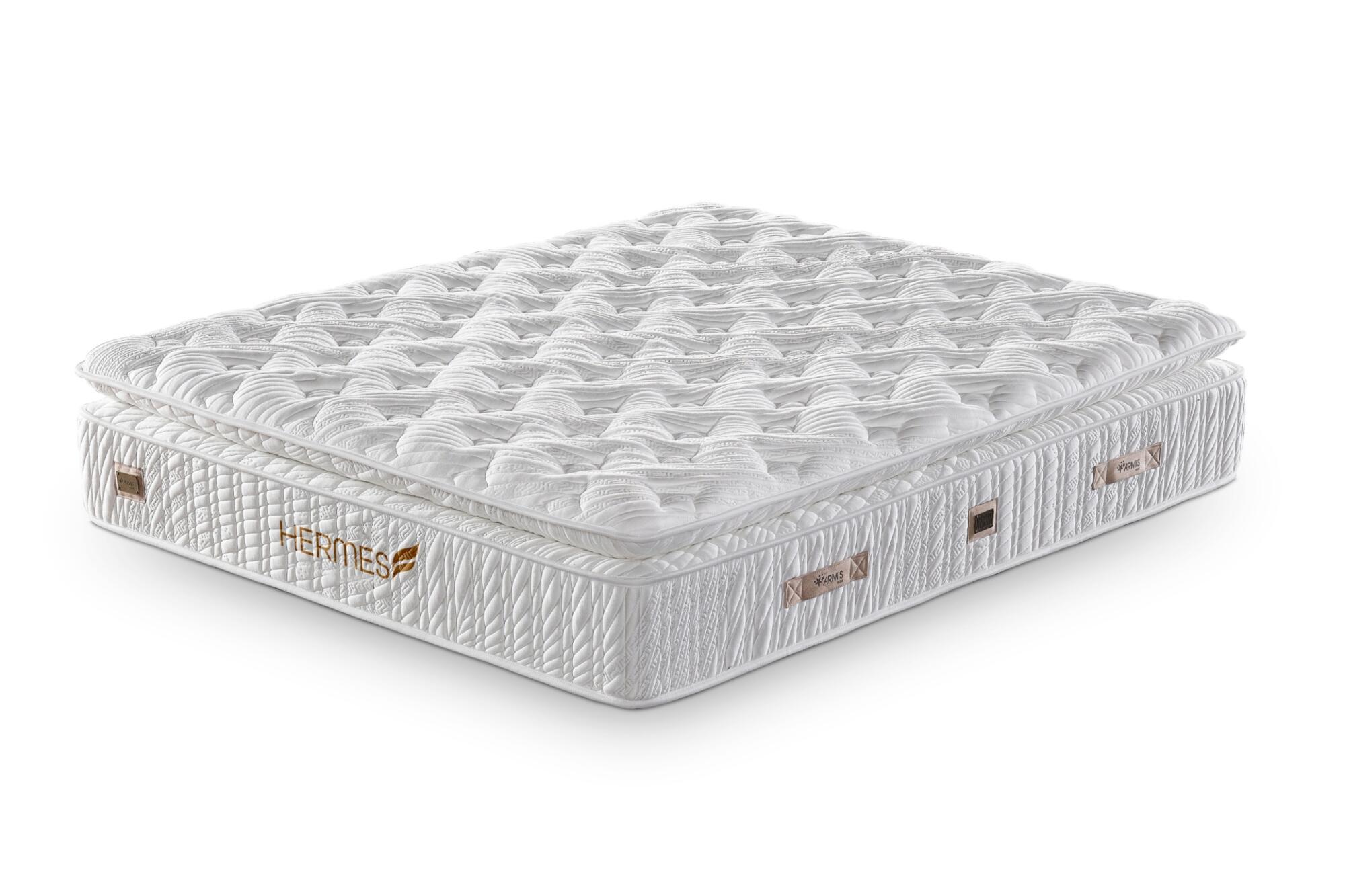 Asil renk tonu, kadife lüks kumaş tasarımı ve zengin dokusu ile evinizde ihtişamlı sarayların atmosferini getirir. Armis Smart Yay Teknolojisi ile üretilen Hermes yatak, vücut ağırlığınızın yatağa eşit şekilde dağılmasını sağlar. Pakete giren yaylar birbirinden bağımsız hareket ettiği için, yatağın bir tarafındaki hareket diğer tarafa minimum düzeyde yansır, bu çiftler için idealdir. Armis Smart Yay Teknolojisi sayesinde, yaylar arasında hava dolaşımı sağlanır, bu da yatağın serin kalmasına yardımcı olur. Vücudu uygun şekilde destekleyerek omurganın doğal hizalanmasını sağlar ve sırt ağrılarını hafifletir. İyi bir uyku kalitesi sunarak, kullanıcıların sabahları daha dinç ve enerjik uyanmalarını sağlar.