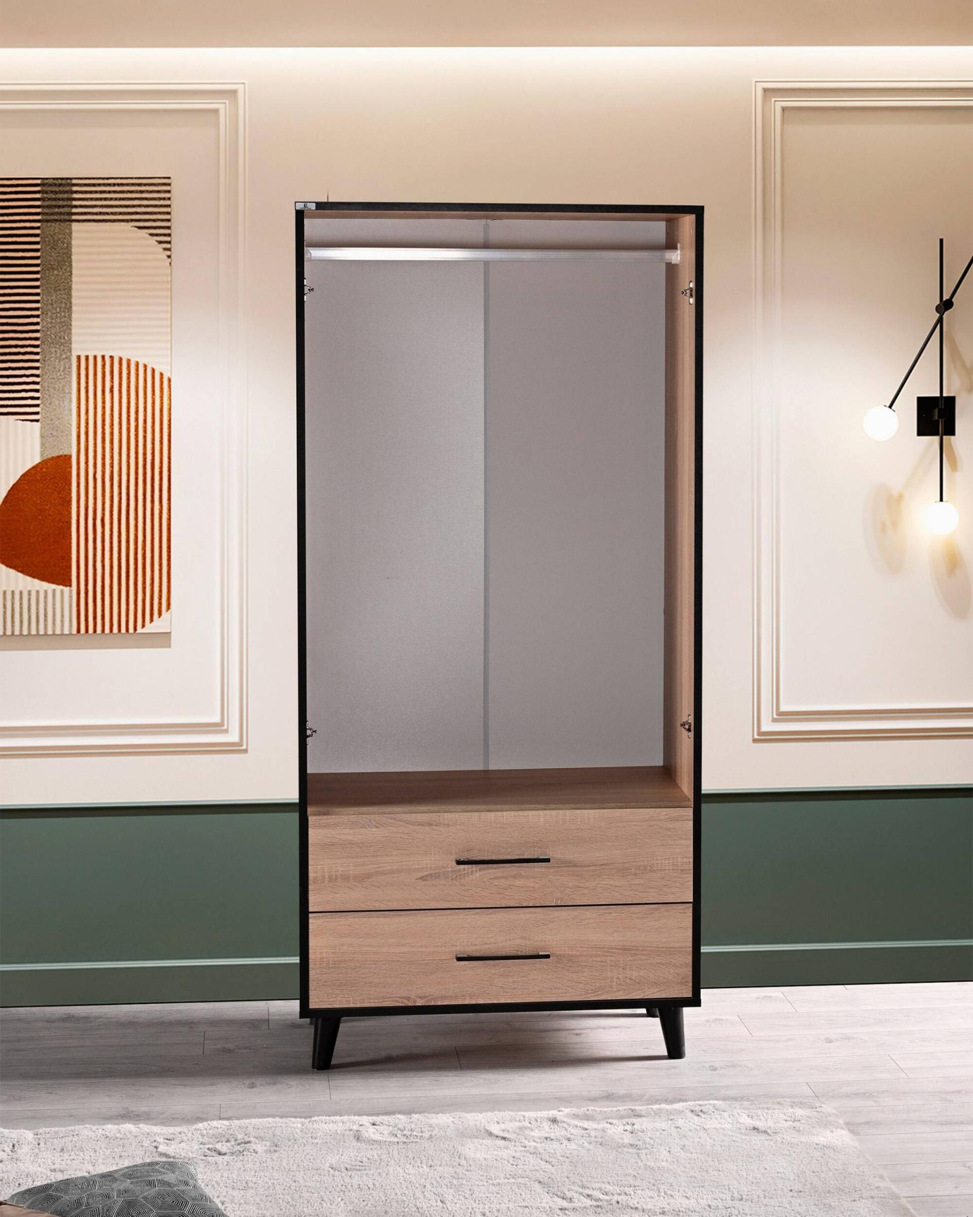 Nova 2 Kapaklı Elbise Dolabı, şıklığı ve işlevselliği bir arada sunarak, evinize modern bir hava katar.