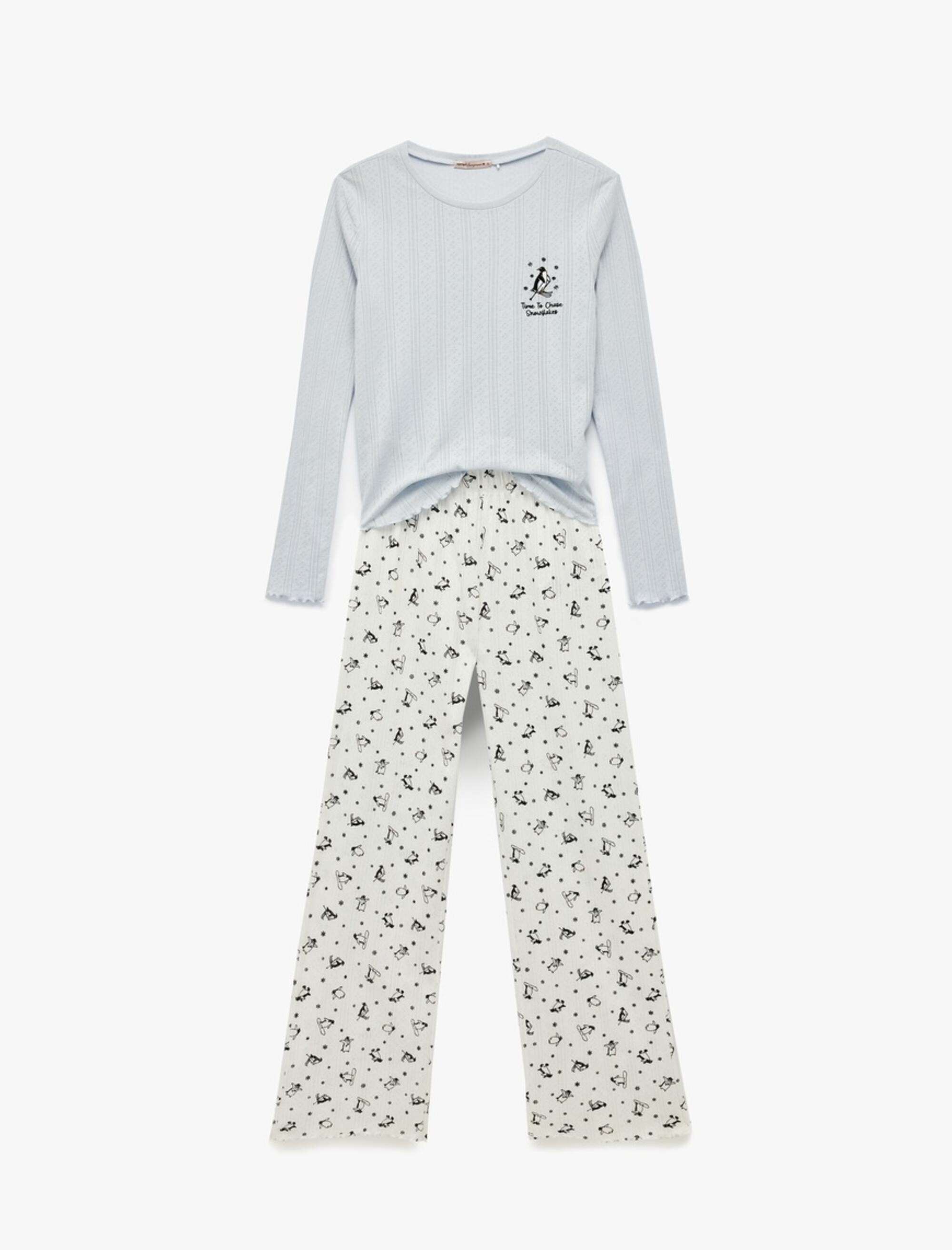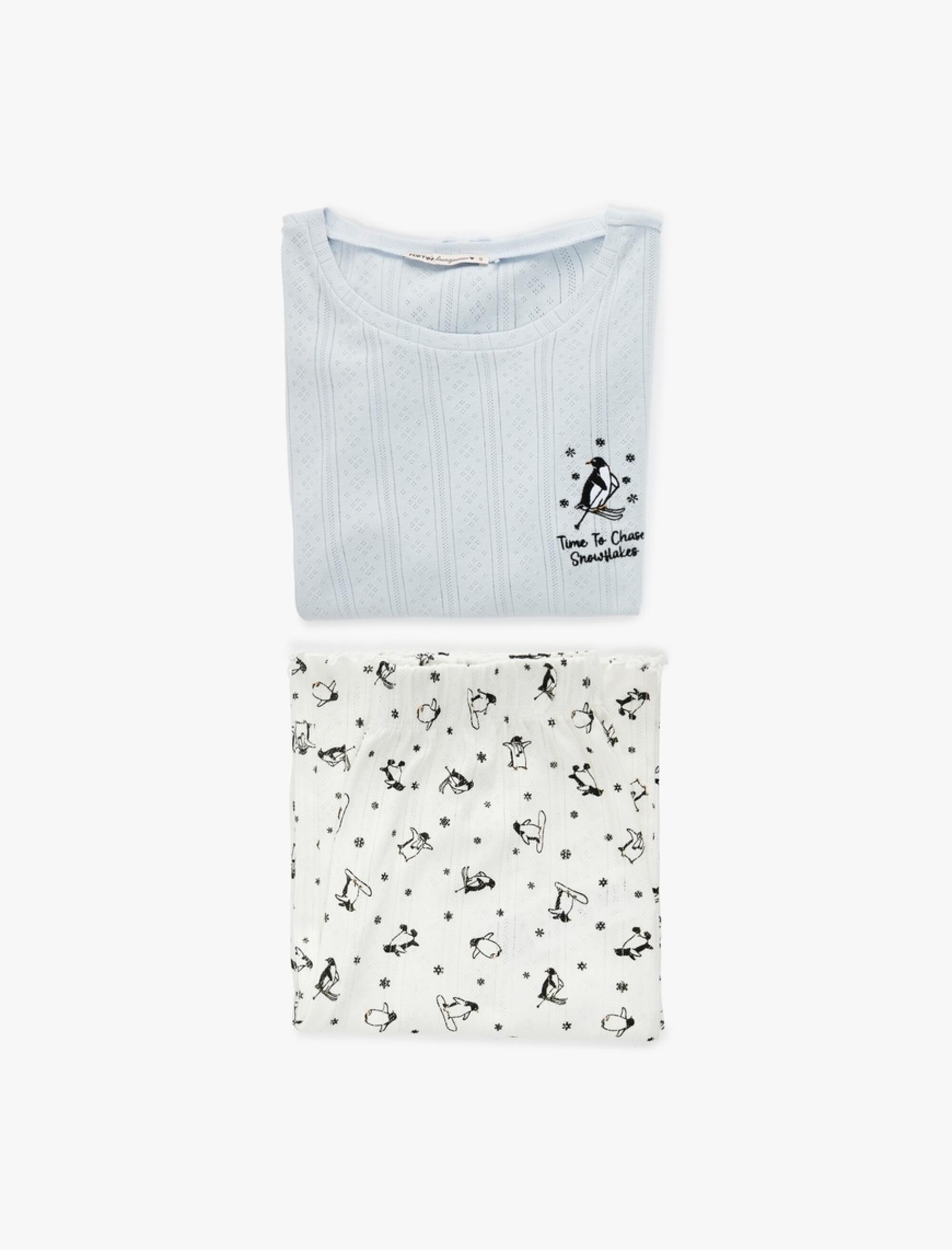 Koton Pijama Takımı 6WLK40155MK Ekru Desenli